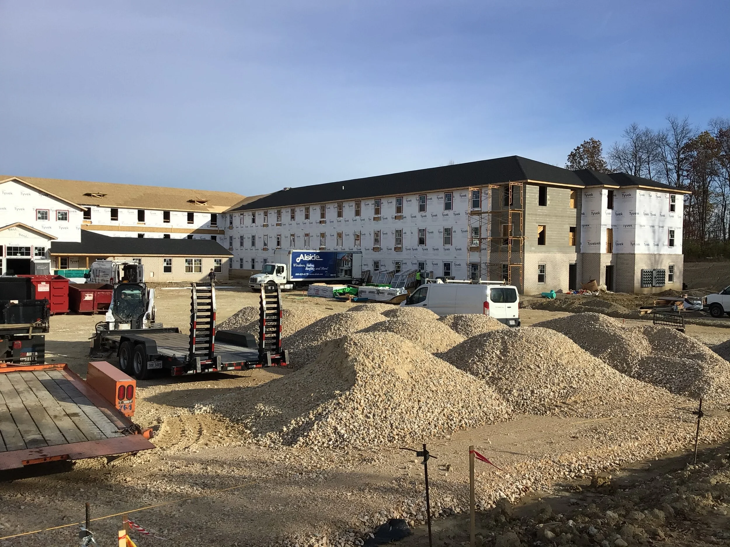 Homestead Village in Beavercreek continues to show progress. The building will be 100% framed by the end of the month, and the construction team is prepping the site and getting ready for curbs and asphalt. They are confident, with weather permitting, that the siding will start this month.