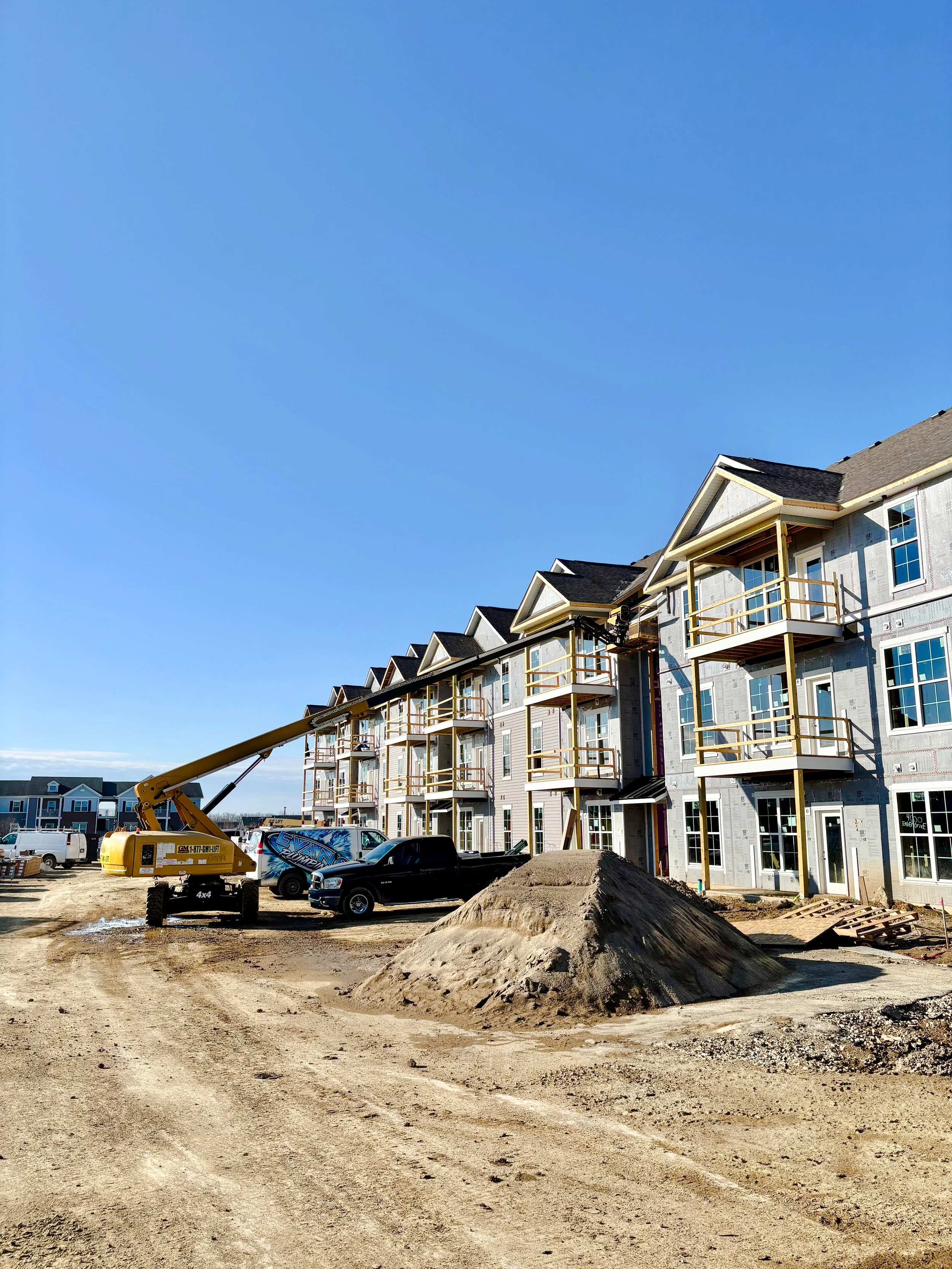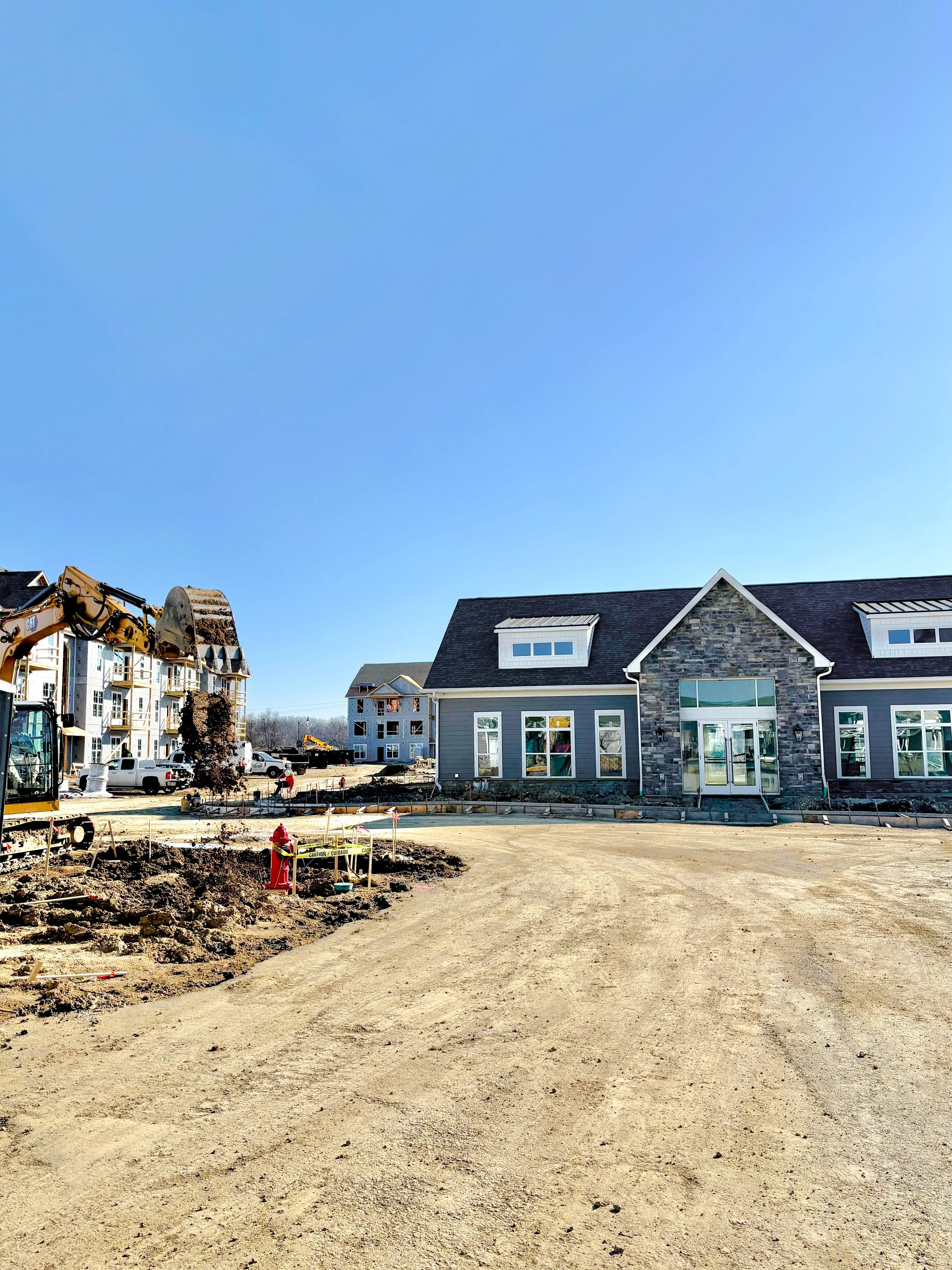 After a long, cold winter, construction is finally gaining momentum. Framing on the Clubhouse is underway and is expected to be under roof within the next two weeks. Site work is nearly complete, with 90% finished, and the first building slab is scheduled to be poured in just two weeks, with the remaining slabs to follow.