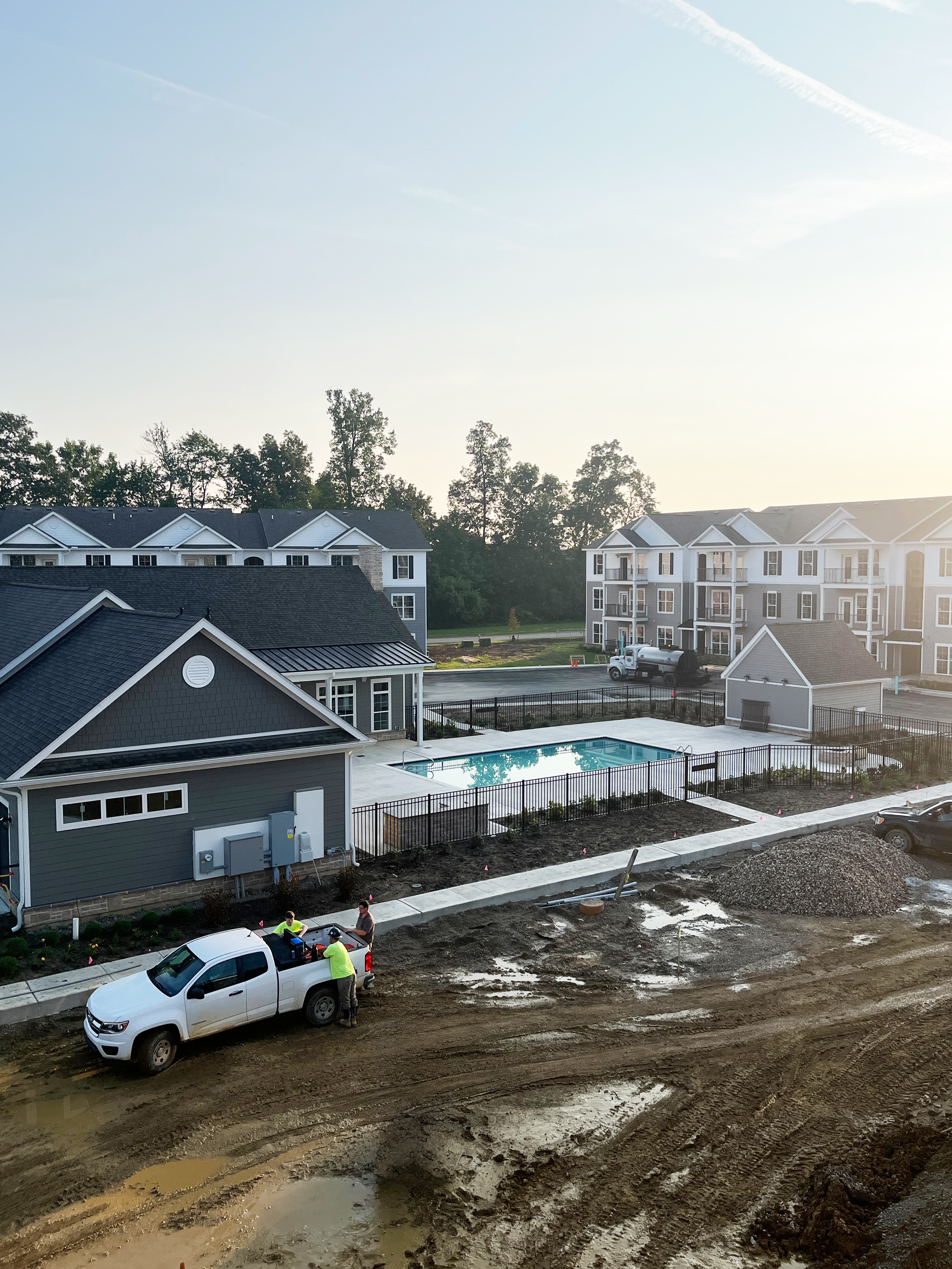 After breaking ground on May 19, 2025, the mass grading is complete, pond is in place and underground utilities have started. The clubhouse is scheduled to open April 14, 2026.